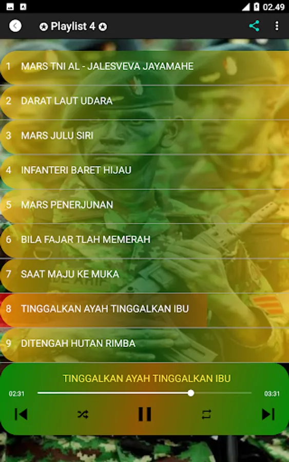Welcome to the application collection of the TNI Yel Mars Songs and the Most Popular 2022 Hymns that you can listen to for free through this application.