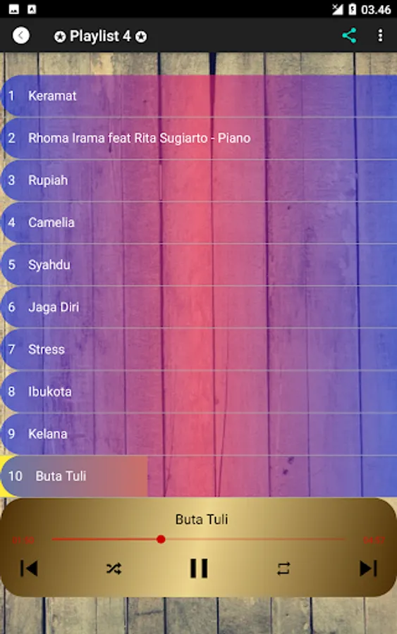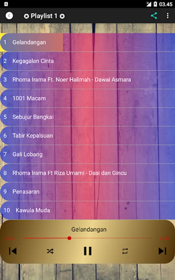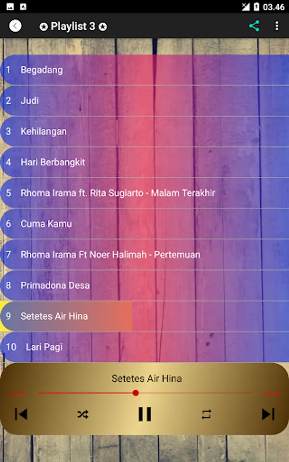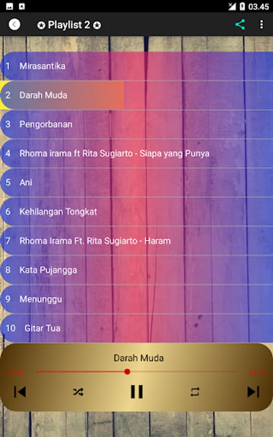 This application contains mp3 of Rhoma Irama's dangdut songs. All the songs in it can be played offline...