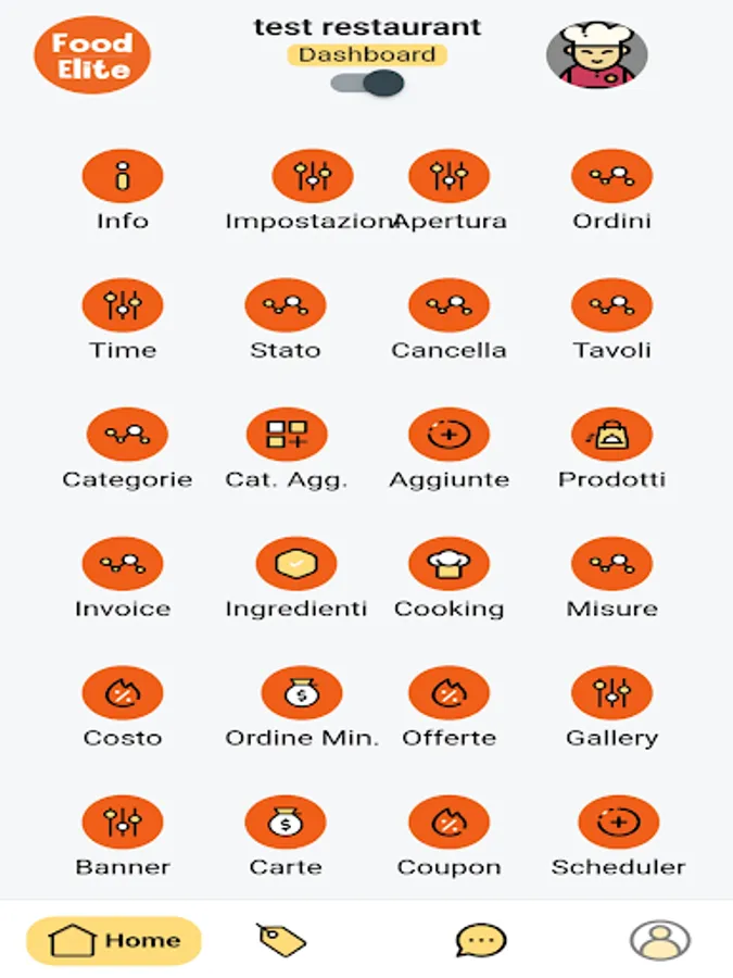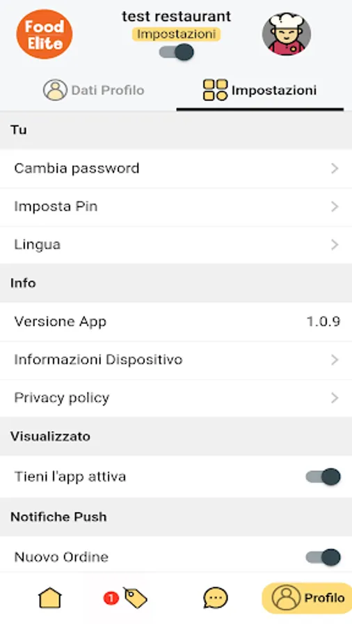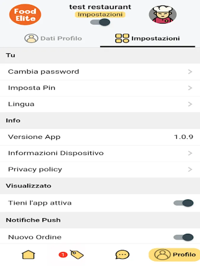 App for the management of orders "exclusively" by the businesses registered on the FoodElite.it platform.