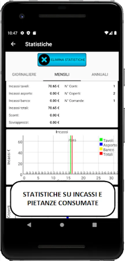 ✔️ Daily / monthly / yearly statistics on receipts, covers and courses most consumed pizzas and drinks