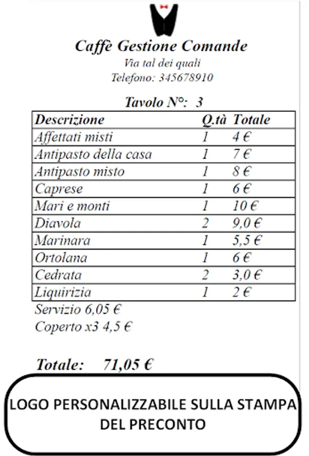 When the customer wants the bill, it can be printed (with the possibility of adding a discount or a surcharge).