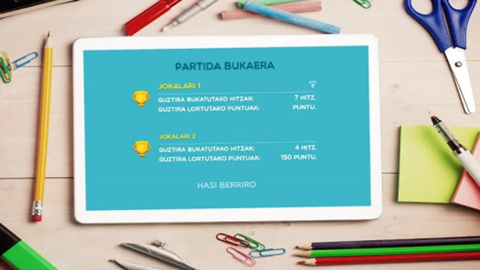 Banaka joka dezakezu zure ezagupenen aurka 5 minutuko epean ahal dituzun erantzun zuzen guztiak emanez. Nahi izanez gero, gailu berean, beste batean aurka jokatzeko aukera izango duzu ere, kasu horretan erantzun zuzen gehien ematen dituen pertsona izango da irabazlea.