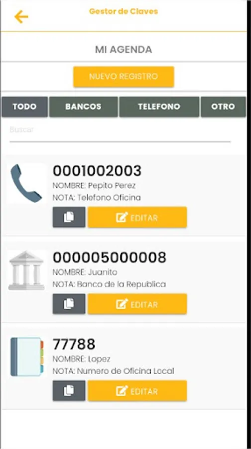 Key Manager It will allow you to easily and quickly manage the storage of your information such as usernames and passwords, you will also be able to manage an agenda with your most relevant data such as cell phone numbers and a wide variety of data that you can manage yourself.