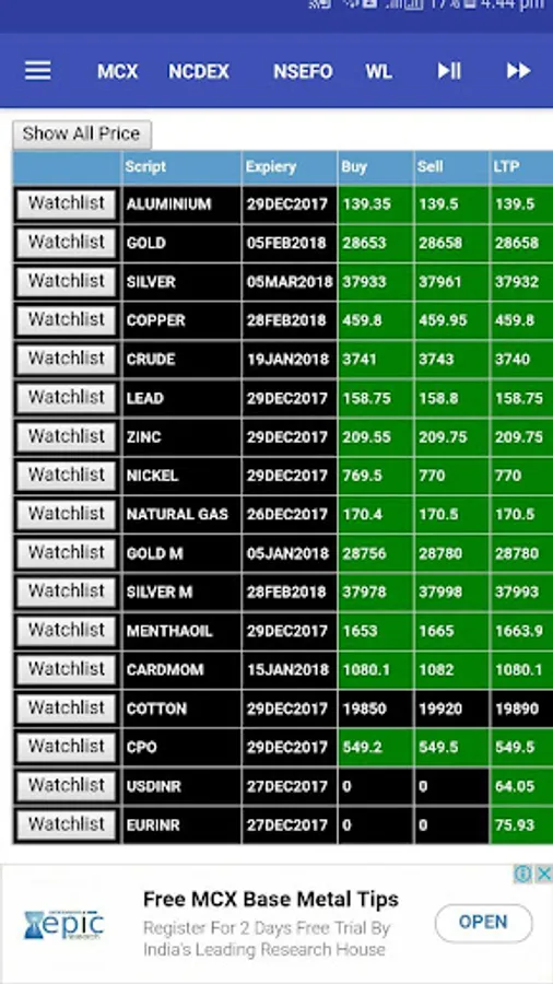 By using this app you can watch Live Price of Indian Commodities Like Gold, Silver, Copper, Crude Oil, Lead, Zinc, Nickel etc.