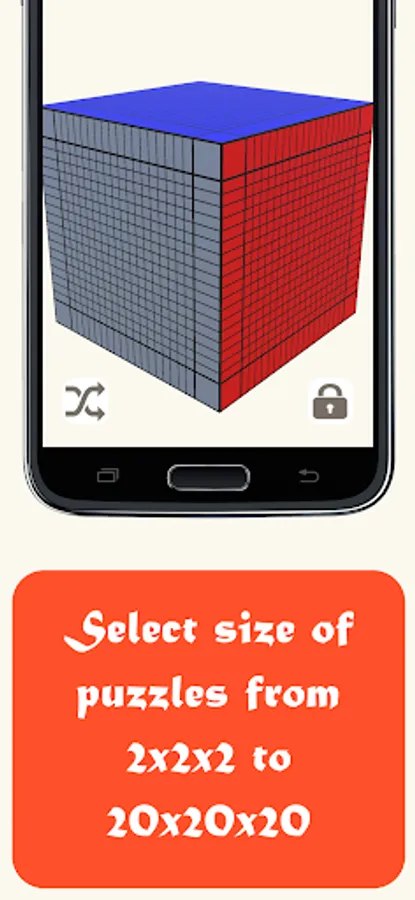 - Choice of the size of puzzles from 2x2x2 to 20x20x20;