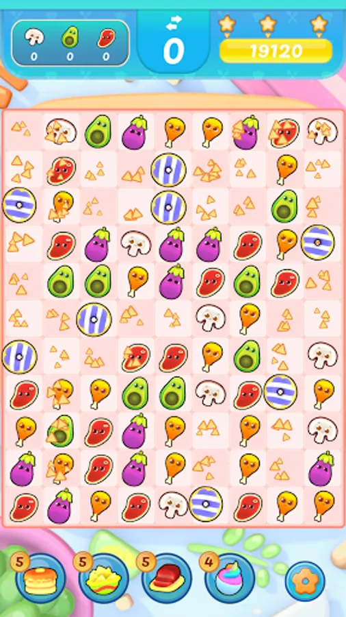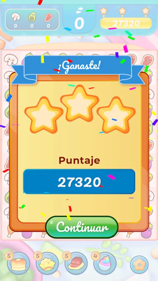 Conecta 3 o más del mismo tipo de comida en la menor cantidad de movimientos posibles.