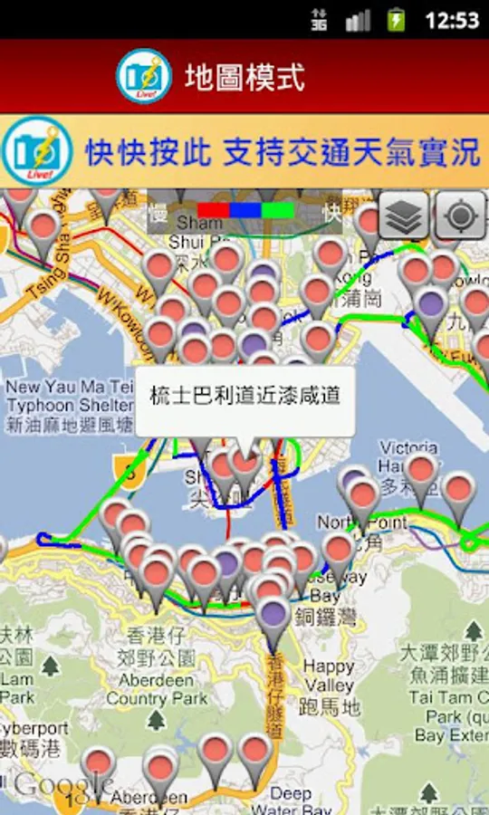 * “Traffic Speed Map” - The traffic speed map provides you with the average traffic speed of the major roads in Hong Kong Island and Kowloon