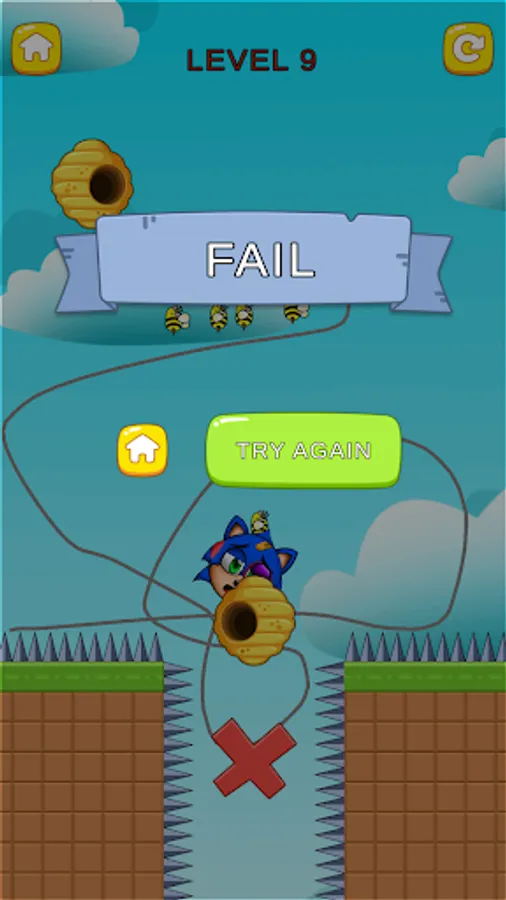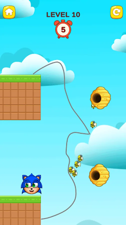 Save The Dog - Blue Monster is a casual puzzle game. You draw a line with your finger to create a wall that protects the blue monster from being attacked by bees in the hive. You need to protect it with walls made with your fingers to protect it from chasing bee