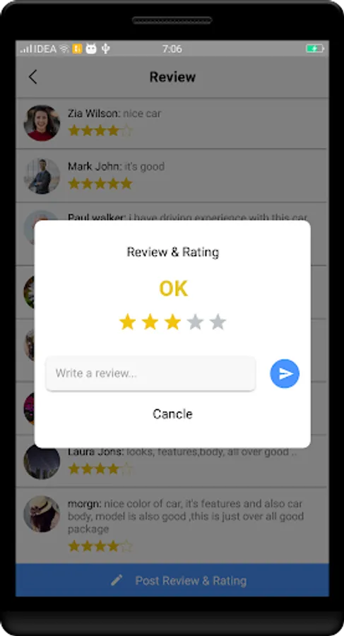 - Review & ratings for vehicle.