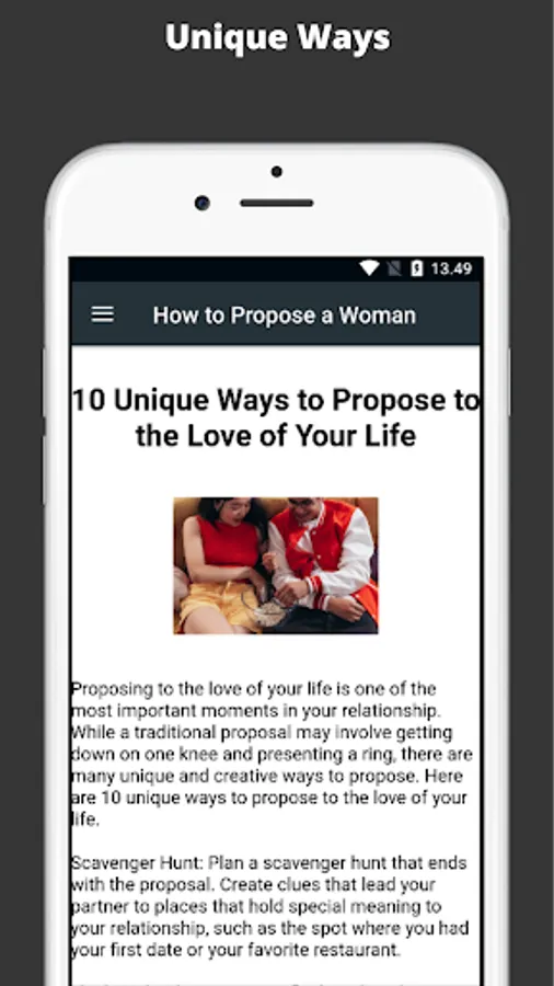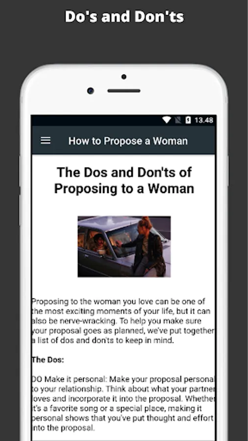 Timing is everything when it comes to proposals. Make sure you propose at a time when your partner is relaxed and receptive. You don't want to propose when they're stressed, tired or distracted. You also need to make sure you're both in the right headspace. Don't propose after an argument or during a difficult time in your relationship.