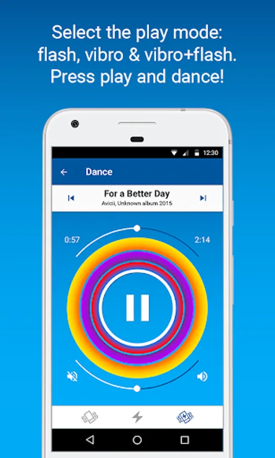 BW Dance app converts music into visual equalizer, vibration signals and flashing lights. The app gives you a chance to dance to the music. Just add a track to the playlist and select a play mode (flash, vibration & vibration+flash). Visual equalizer on the screen shows you the rhythm of the track.
