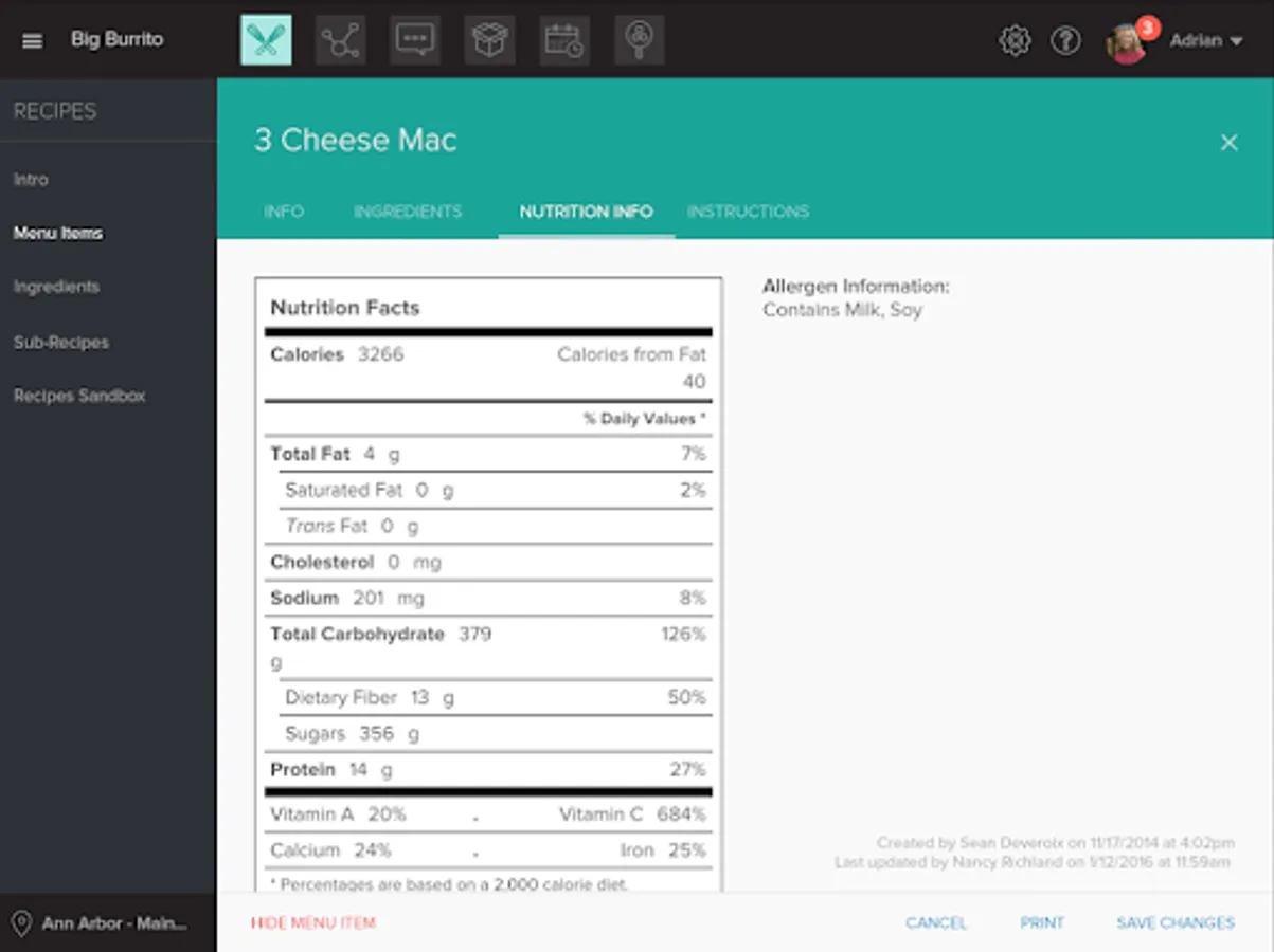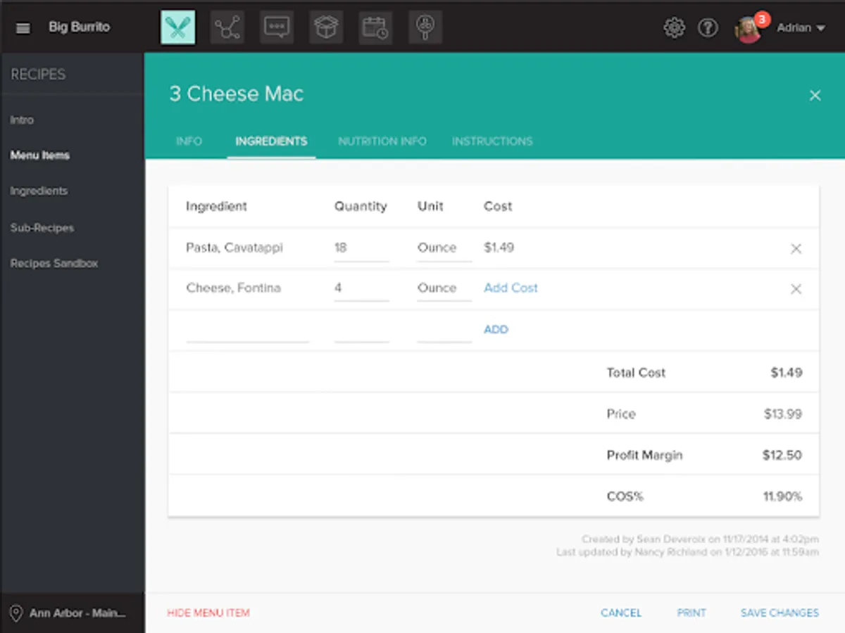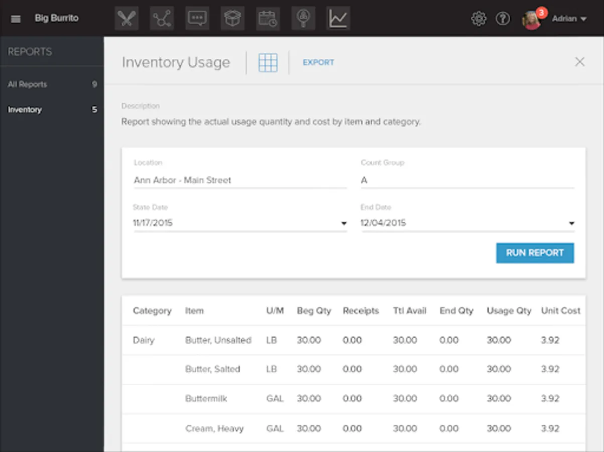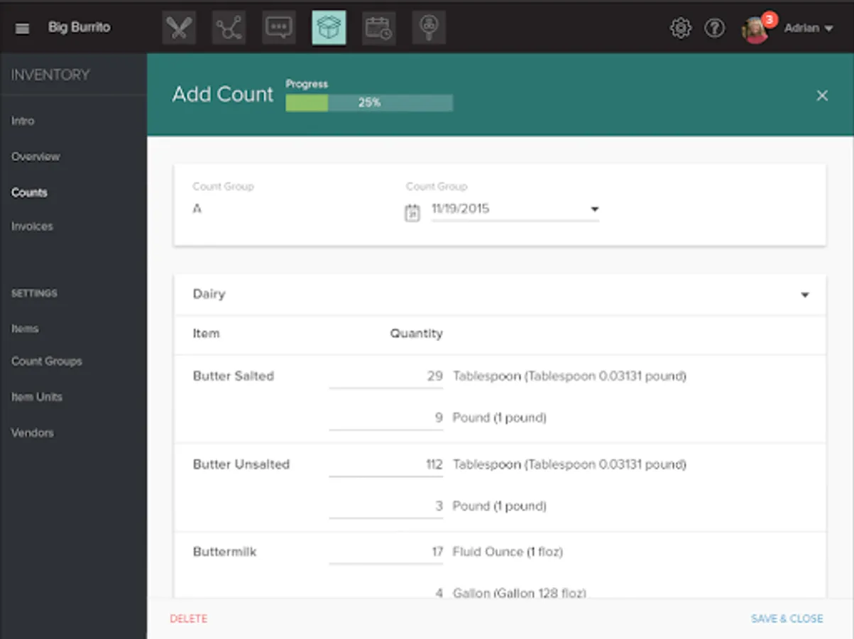 - Full inventory management made easy using any device to enter counts, receive shipments, and manage food prep