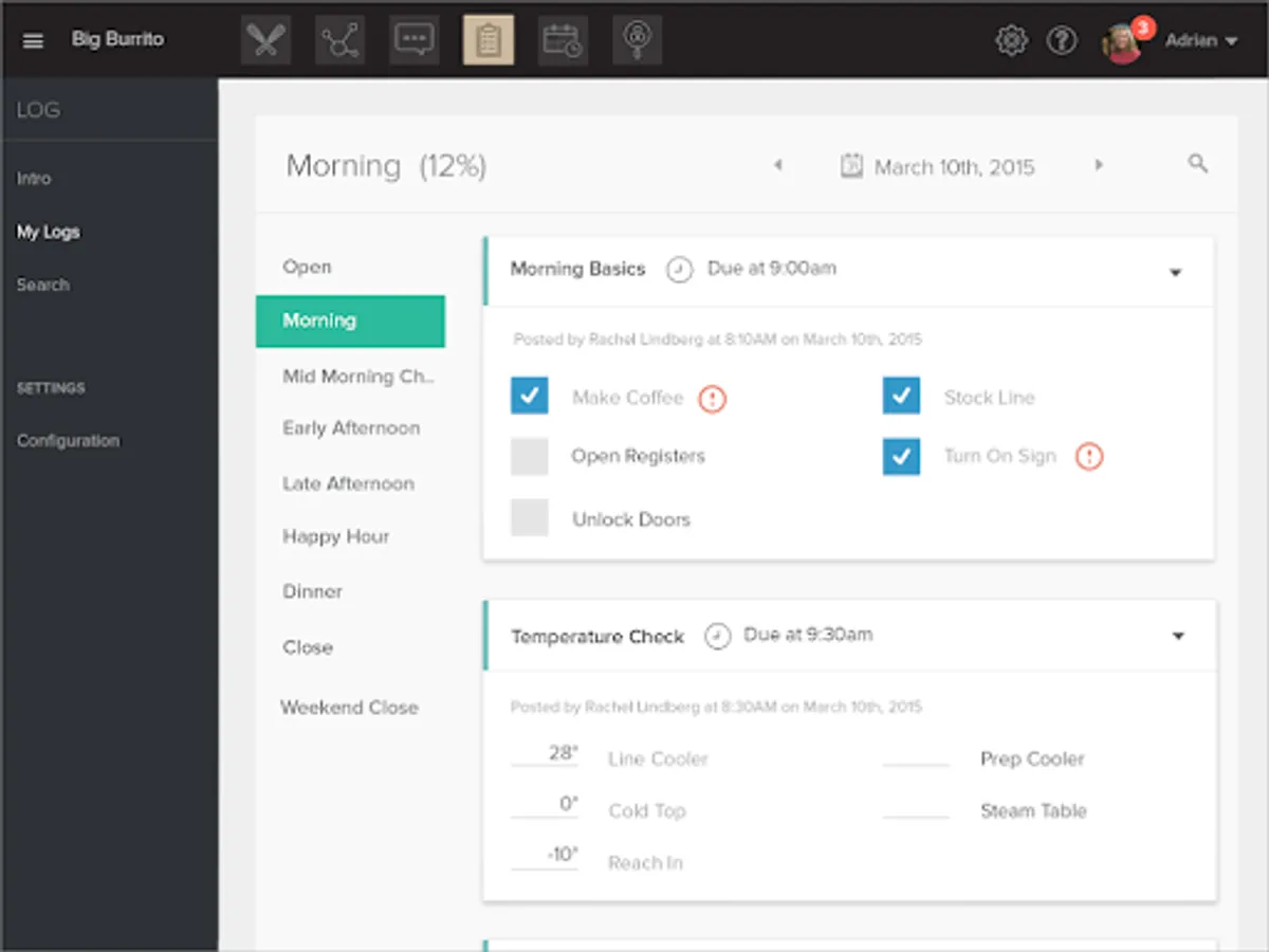 - Allow anyone to use the manager log to complete important tasks by day or by shift and have full visibility into your operation and compliance