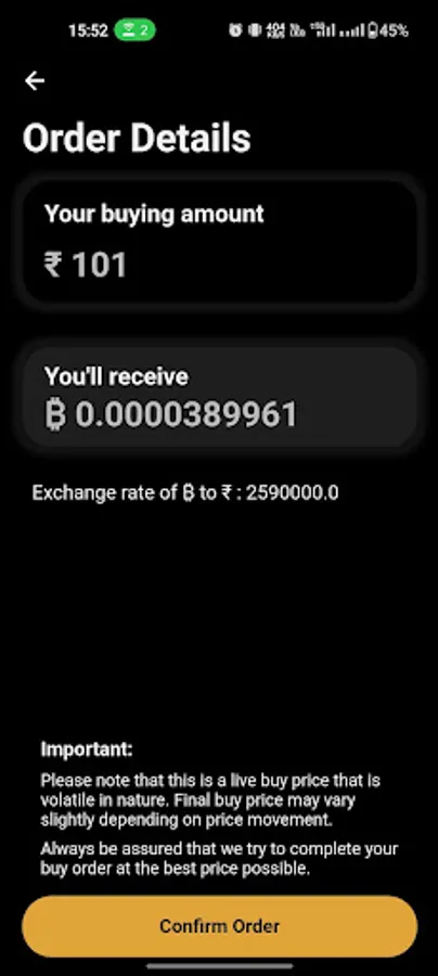 Buying bitcoin made simple! Buy and hold Bitcoin instantly and securely - Add money, buy bitcoin and start building your Bitcoin portfolio today! Start with as little as Rs 100, and empower yourself by joining the digital revolution! Instant purchase added to your bitcoin balance.