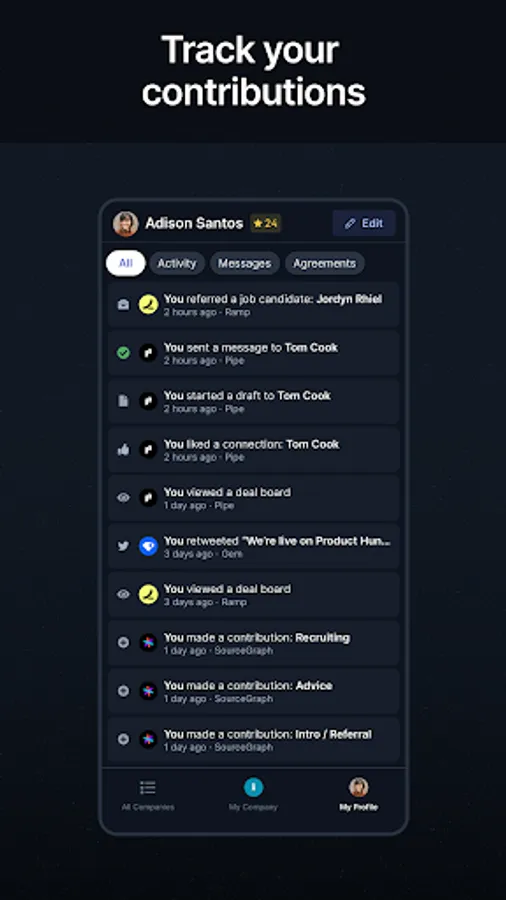 - Offer intros, referrals & endorsements to advance deal pipeline