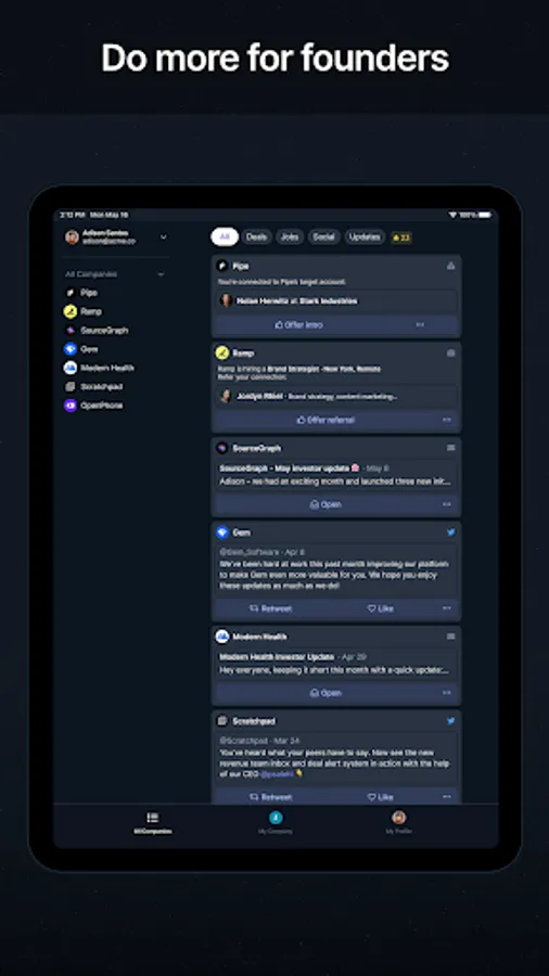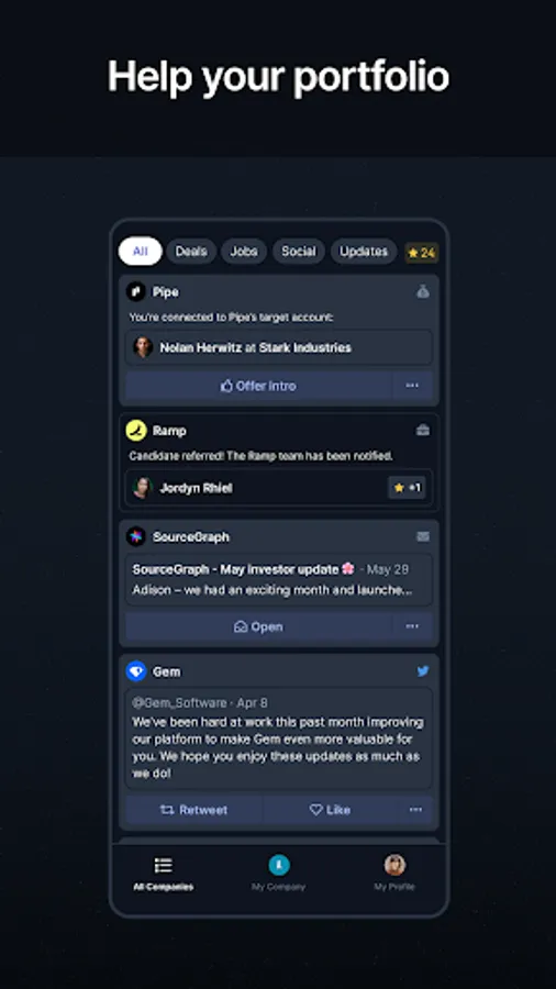 Cabal makes it easy to help your portfolio companies with sales, marketing, recruiting, and more. It’s a founder-friendly, secure workspace for offering contributions and scaling your time.