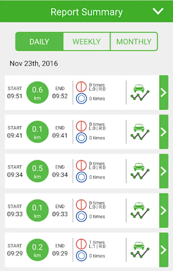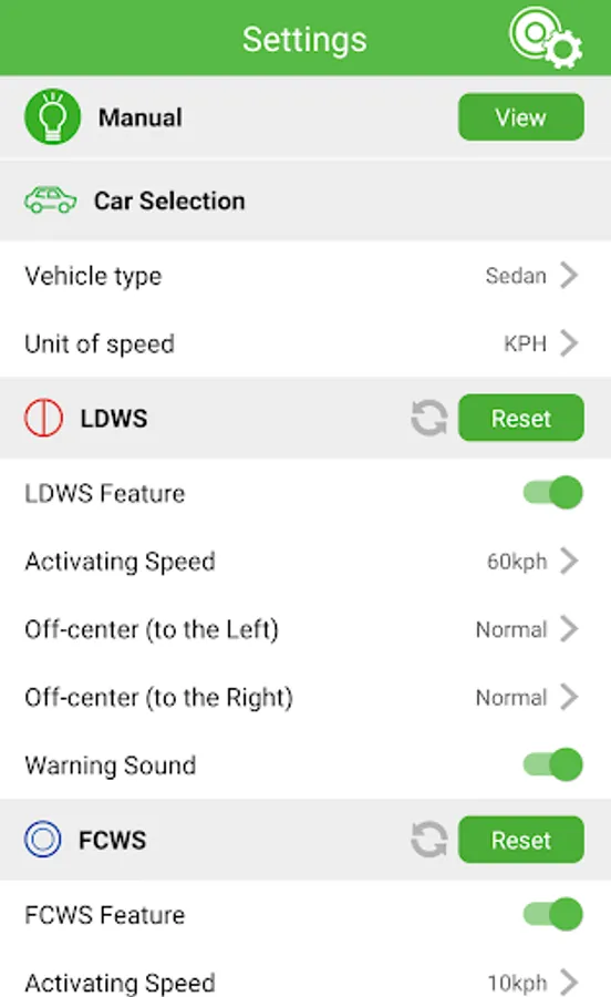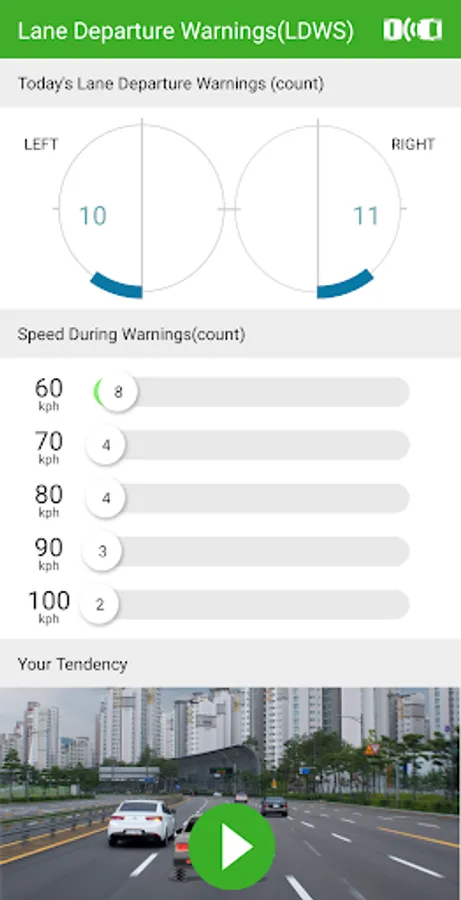 For driver safety, the CarVi app offers the LDW (Lane Departure Warning) and FCW (Forward Collision Warning) features and allows the driver to save trip data periodically and check the driving route for road hazards.
