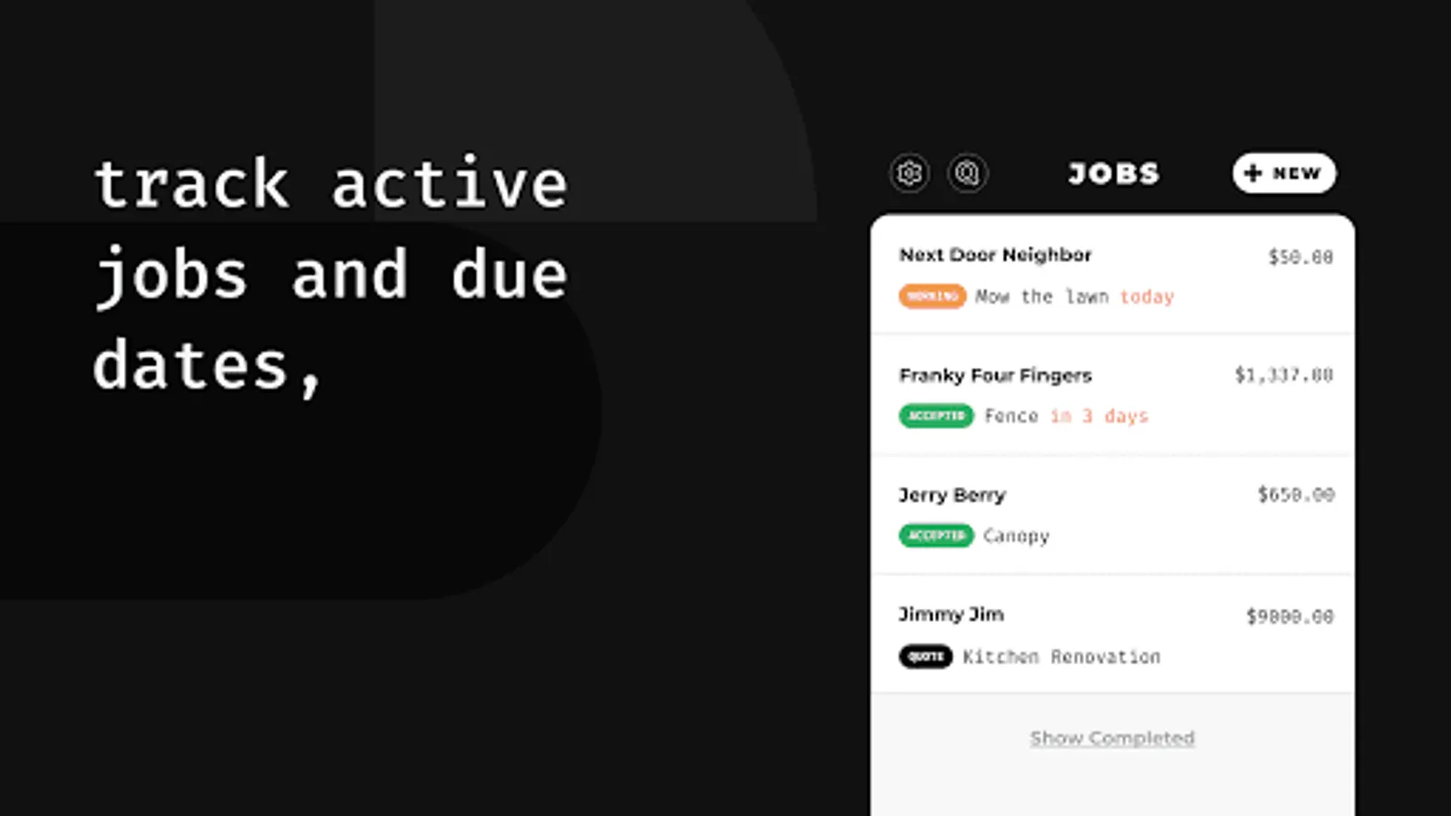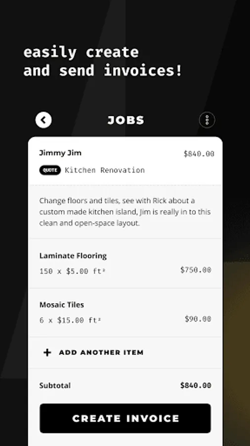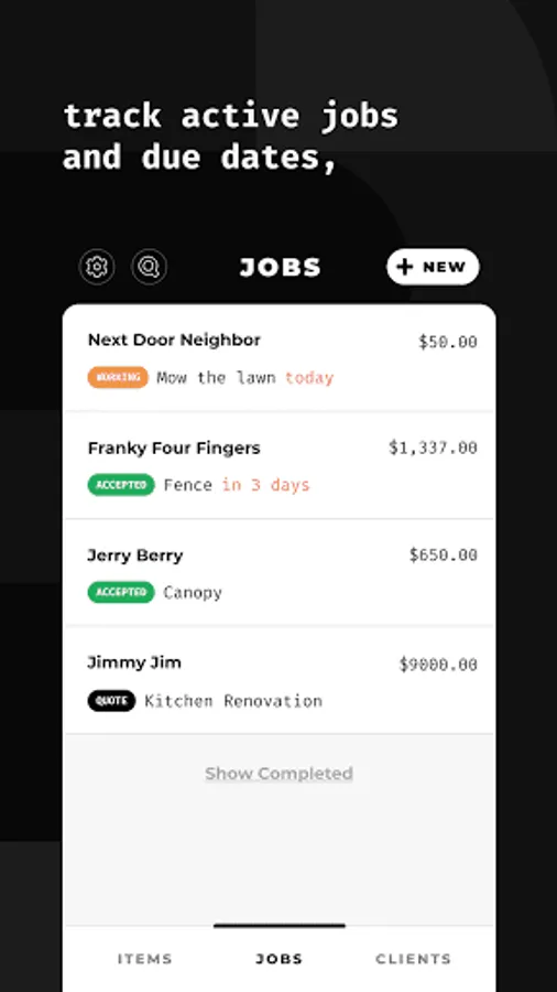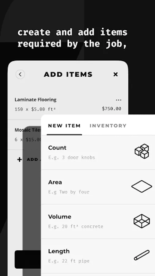 With Count you can input your item and client lists to generate invoices and estimates on the spot. This will enable your customers to accept them before you leave and streamline the whole process.