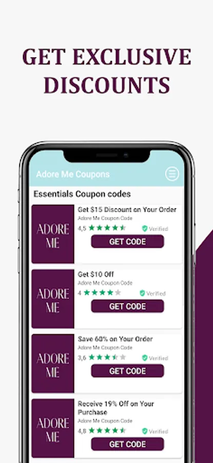 This coupons app for Adore Me is not an official application of any of the brands, stores, or services listed. All trademarks and logos are the property of their respective owners.