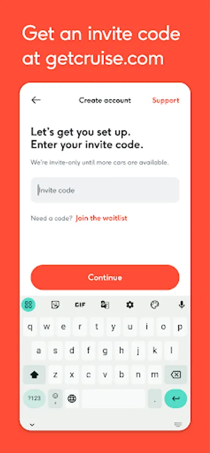 First, join the waitlist at www.getcruise.com. We’ll send an invite code when a spot opens up. Then, enter your code in the app to sign up. Already a member? Sign in with your email and phone number.
