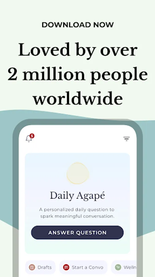 Using Agapé is as easy as answering just one question a day, but with a new person each time. Each question is based on decades of research and chosen specifically for you. Agapé’s questions are fun, exciting, and sometimes even spicey! But don’t worry, we will only send a spicy question if you're matched with your partner.