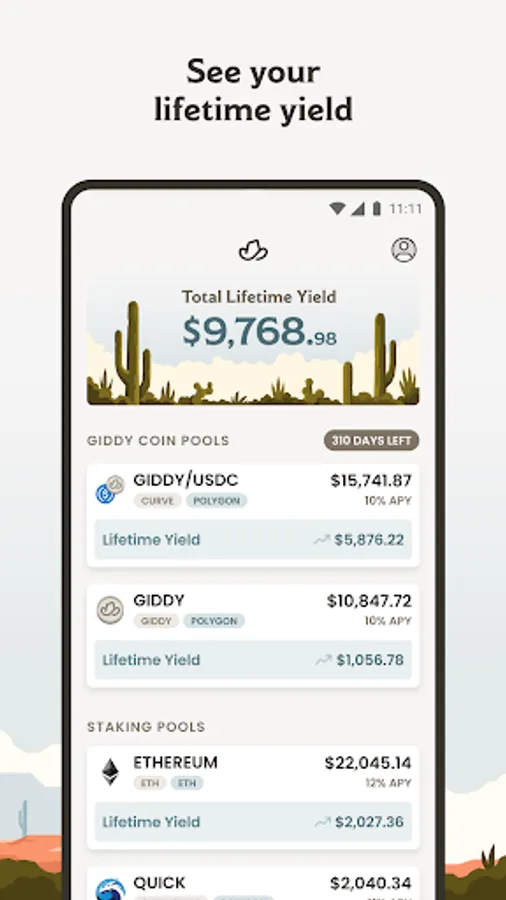 Until now, participating in DeFi has been extremely technical and difficult for most people. Giddy takes care of all that complexity and delivers an easy-to-use experience so that anyone can get into the game.