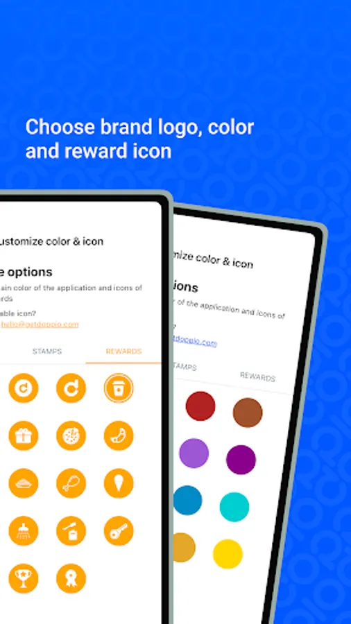 You can easily customize the app's appearance to suit your business needs, including using a color more suitable for your brand identity, choosing a stamp icon, uploading your brand logo, and selecting a reward icon and corresponding name.