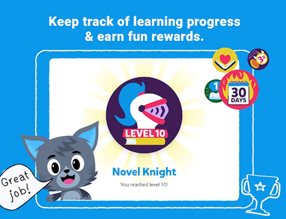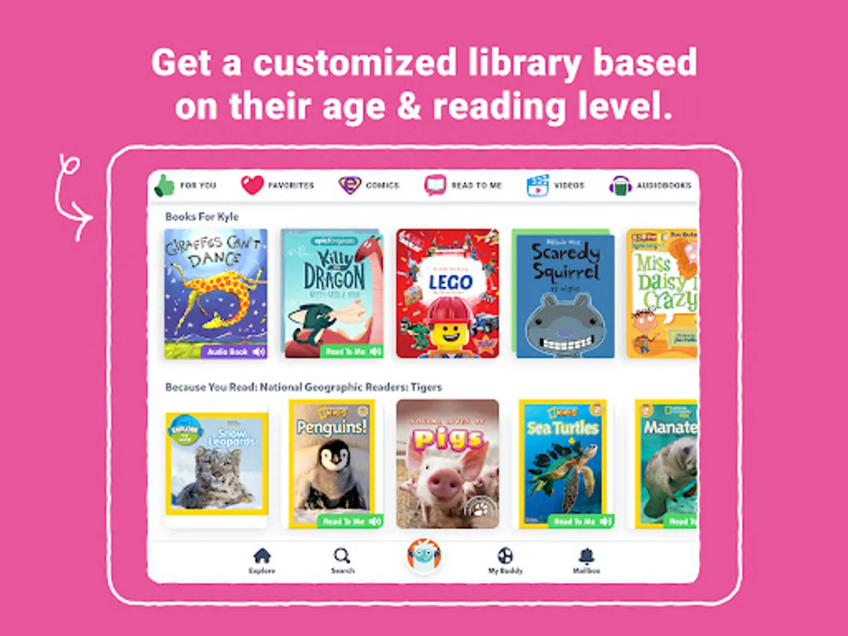 Fun rewards and learning tools: Reading Buddies, badges and quizzes keep them motivated to read and learn. Spotlight Words and audio-enabled Dictionary Lookup teach vocabulary and pronunciation.