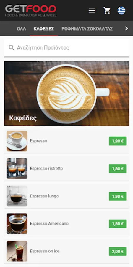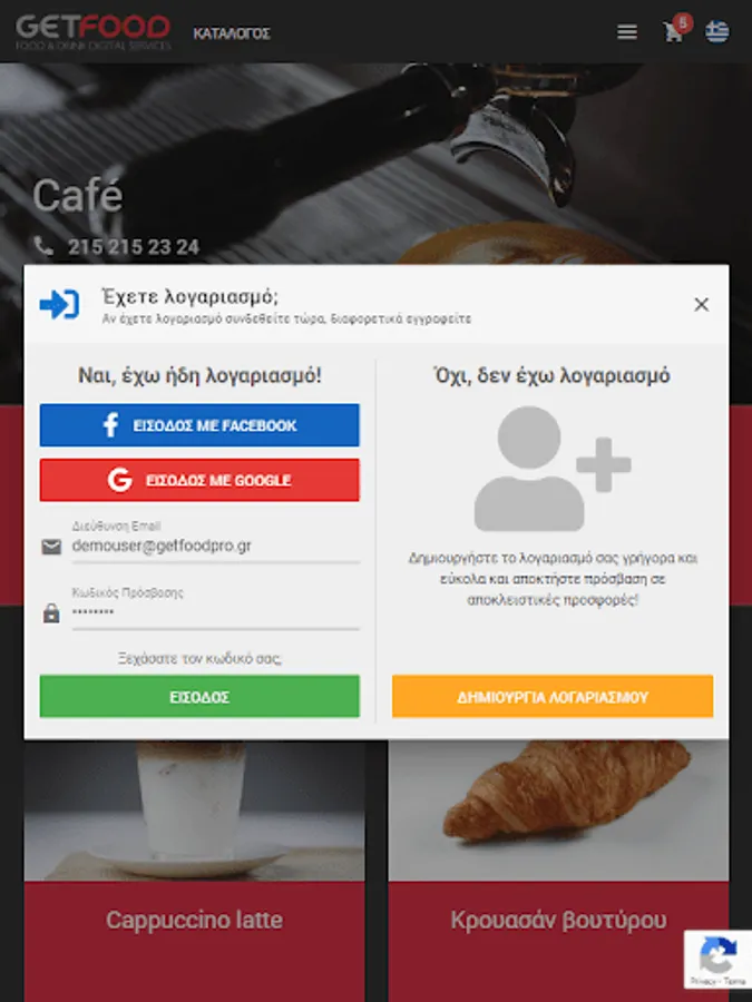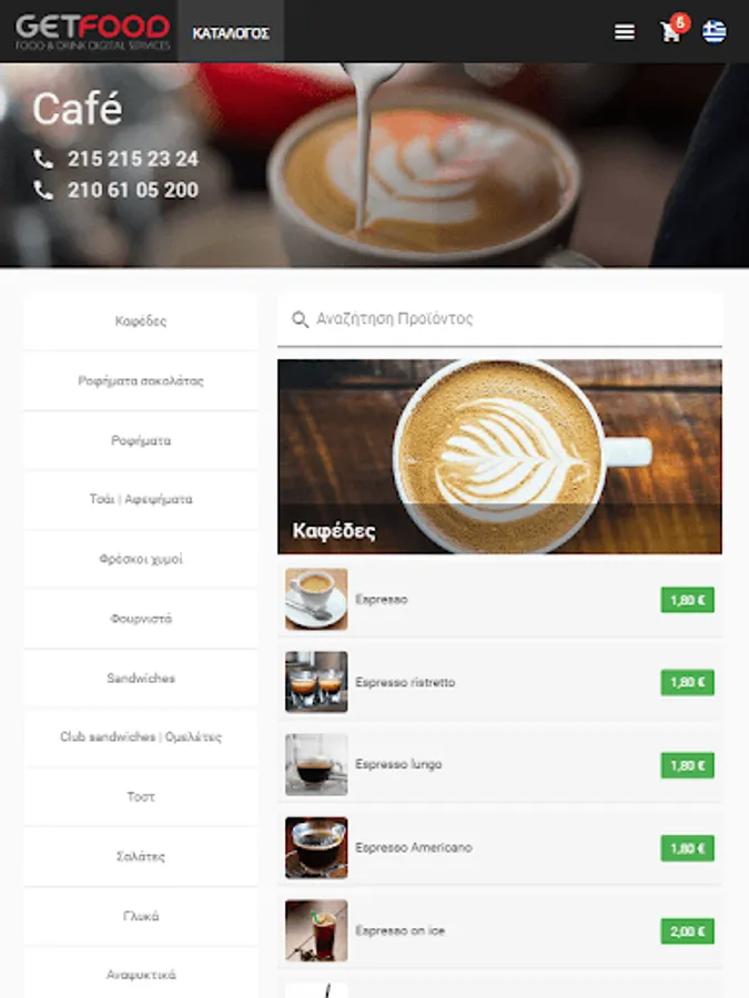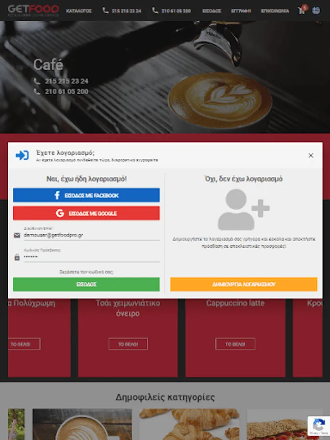 GETFOOD Pro Demo Cafe Online Ordering Application