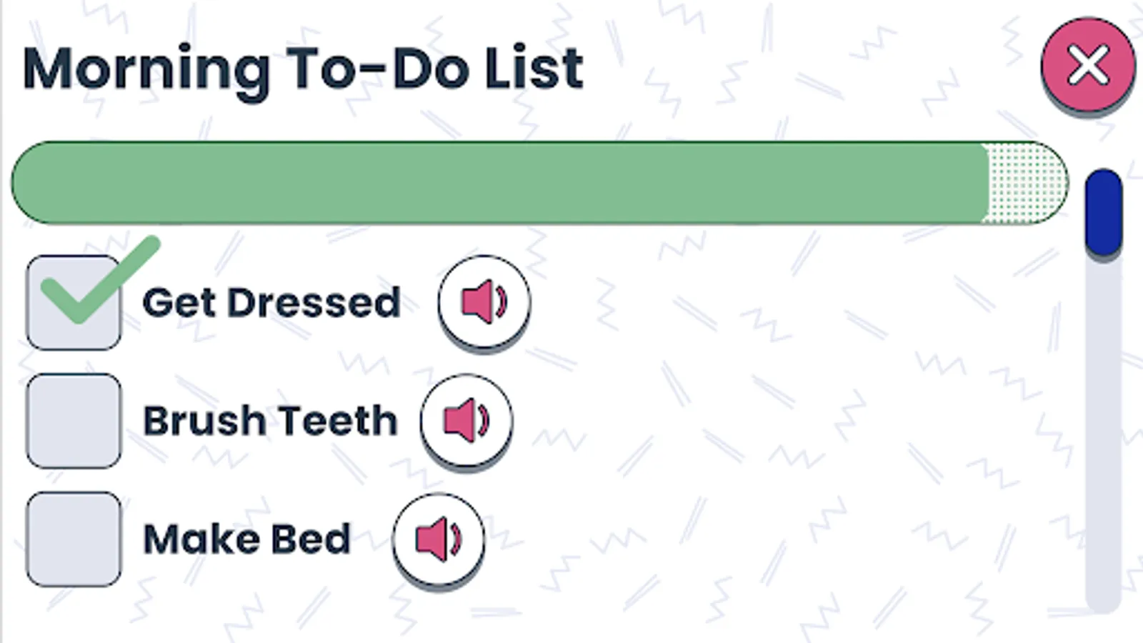 Motivate your kiddo with an integrated token board economy. Once they complete a to-do, they can get points towards rewards that you set!
