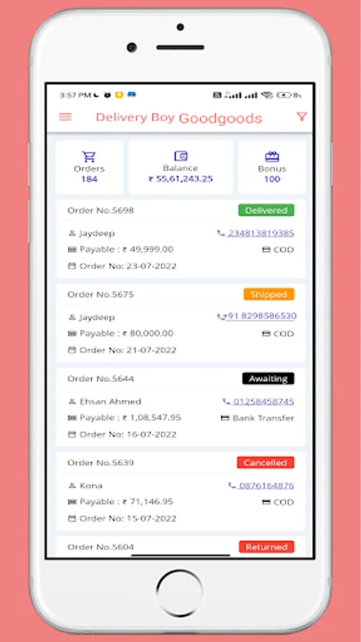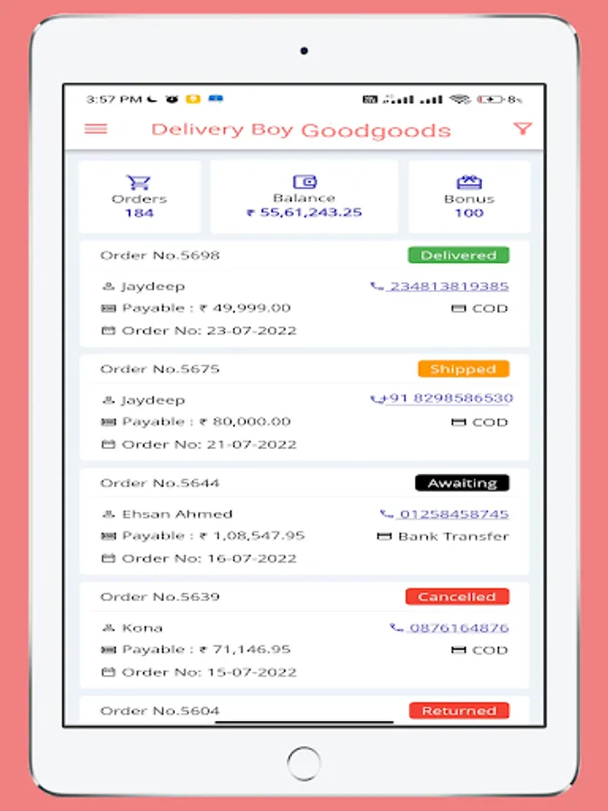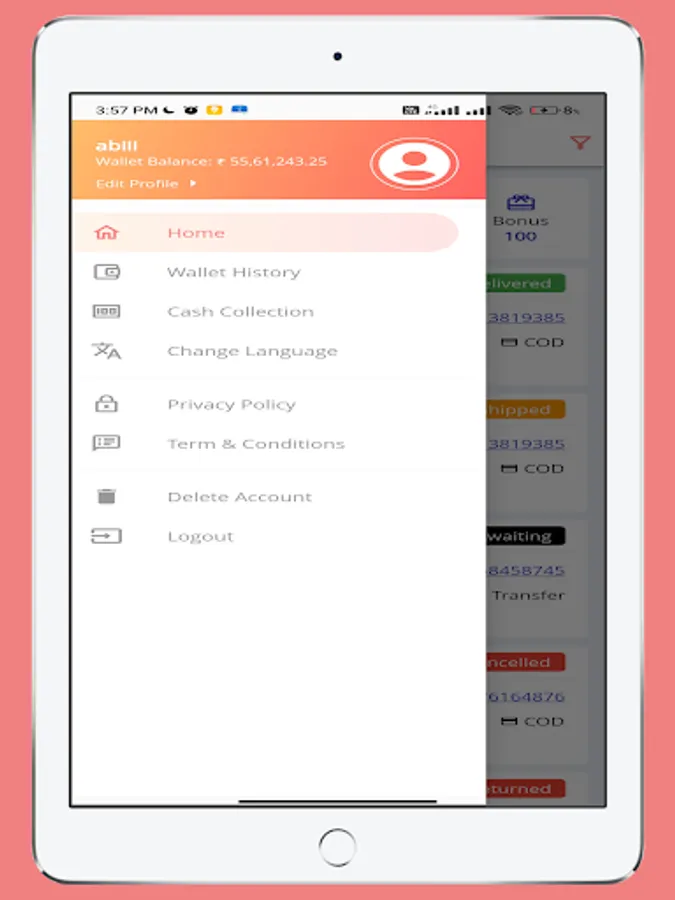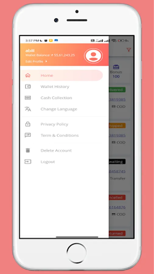 •View Earning Balance if the delivery man is a Freelance delivery man.