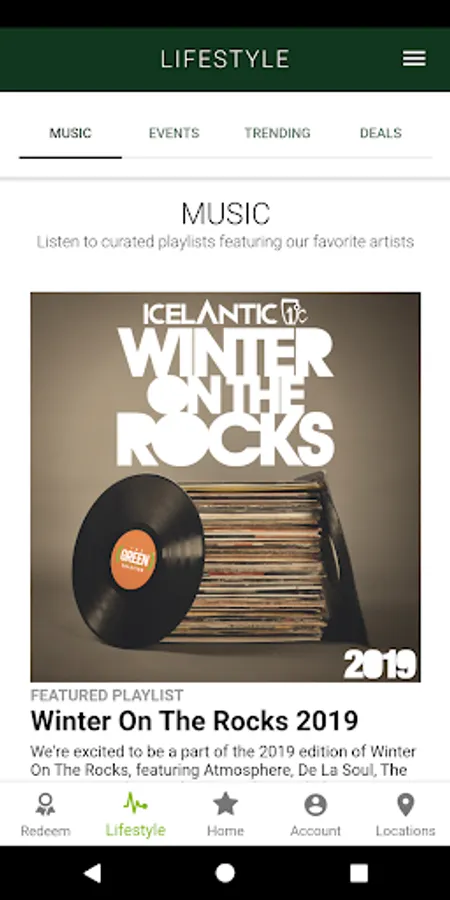Access your rewards account, see upcoming events, view trending products, get offers and deals, listen to featured artists, find locations and more. Download (Green) Lifestyle today!