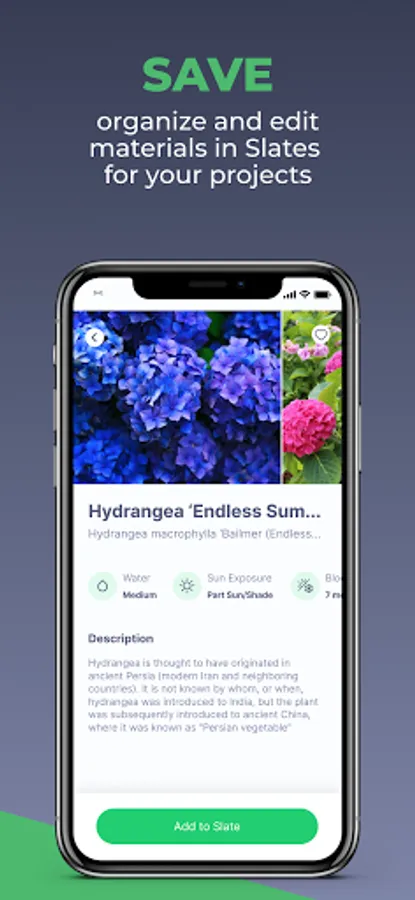 GreenSlate is the #1 app for landscape contractors to save hours each week selecting plants and hardscape materials for their projects.With our extensive catalog of thousands of materials, you’re equipped to impress your customers on the first appointment - and sell projects quicker and easier!Landscapers are using GreenSlate’s extensive catalog to unlock: