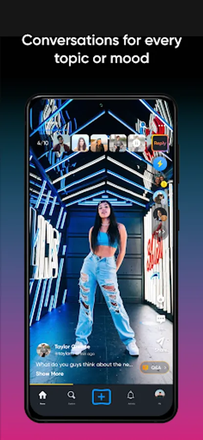 Swipe up and down to explore endless content, swipe left and right to dive deeper into content that interests you, and join threads and allow people to join yours to share new ideas and opinions.