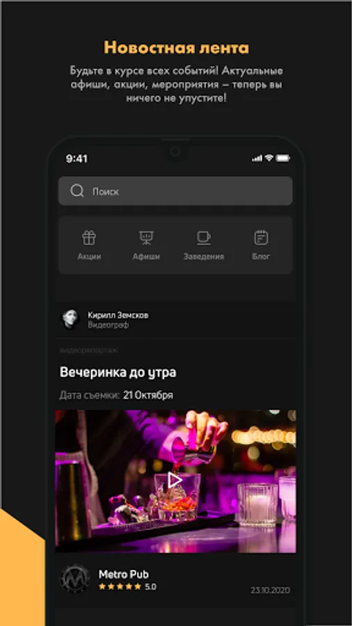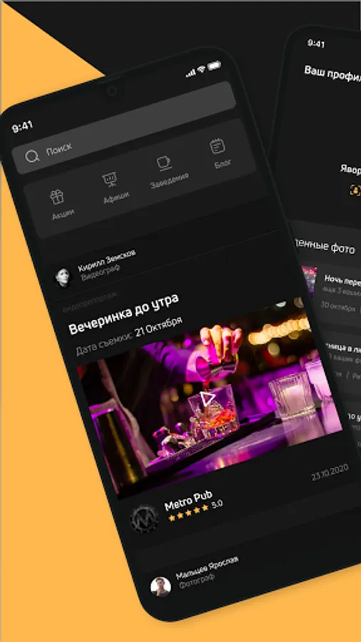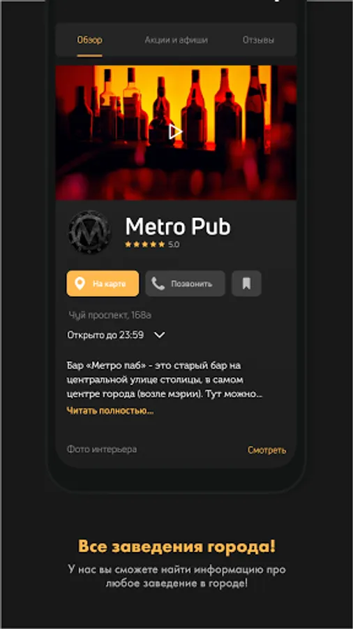 We also have a photo portal where you can see all the photos and video reports of various establishments, feel the whole atmosphere of the events and study in detail the menu and the atmosphere of the establishment that you want to visit.