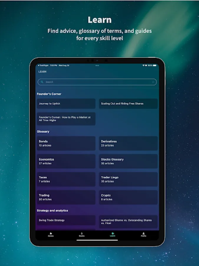 UpTick aims to inform the interested investor of any level on how to invest, with no risk! We allow users to compete, learn , and make mistakes safely.