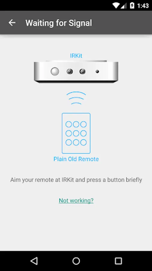 IRKit Simple Remote allows you to set up your IRKit, learn and send remote signals.