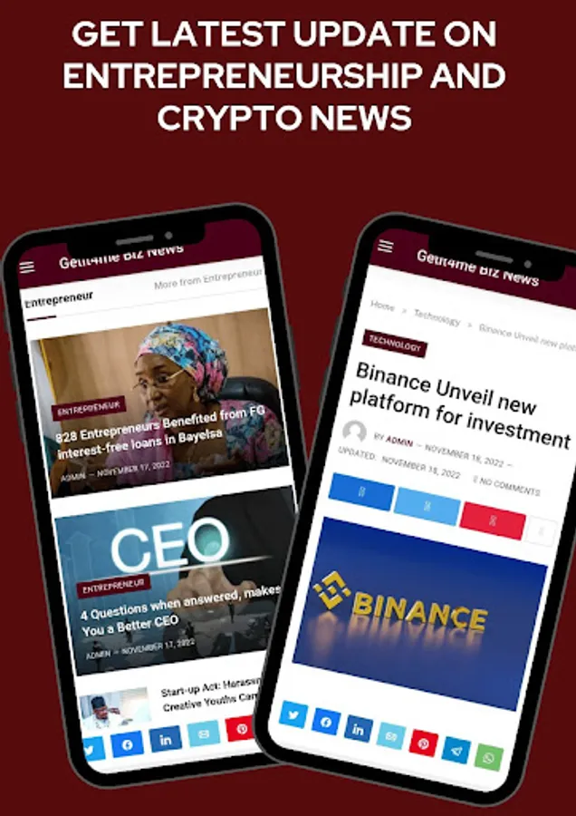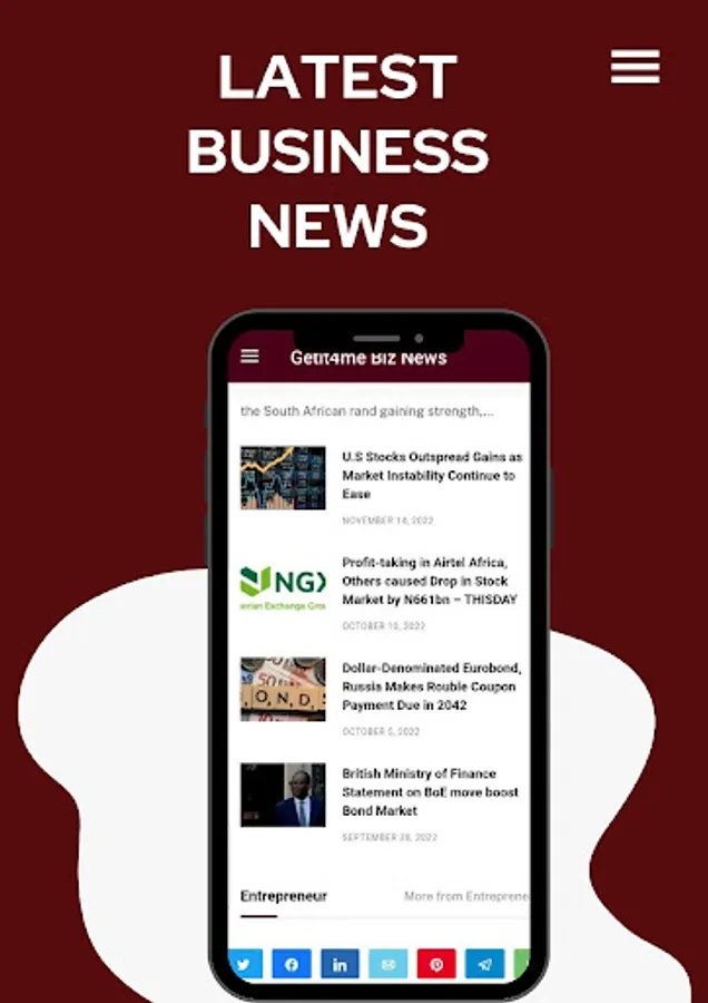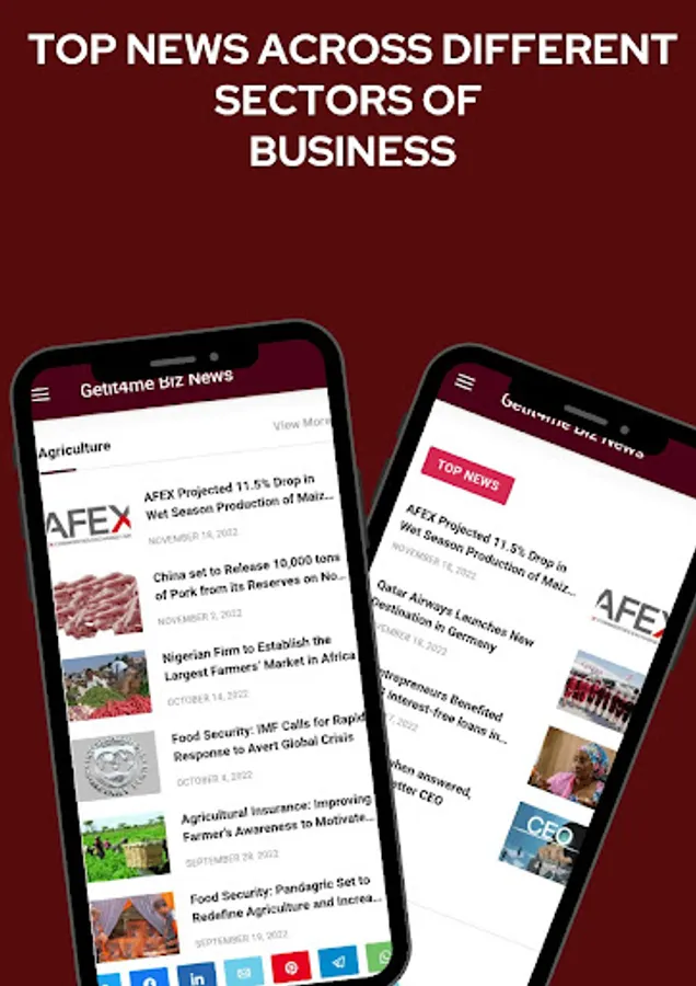 Getit4me app gives latest and trending Business news local and International, the app provides top news in Agriculture, Energy, Economy, Market analysis, Technology, People and Money, Entrepreneurship and Interviews with Top Business Executives to share in their wealth of experience, and also brings you latest market data.
