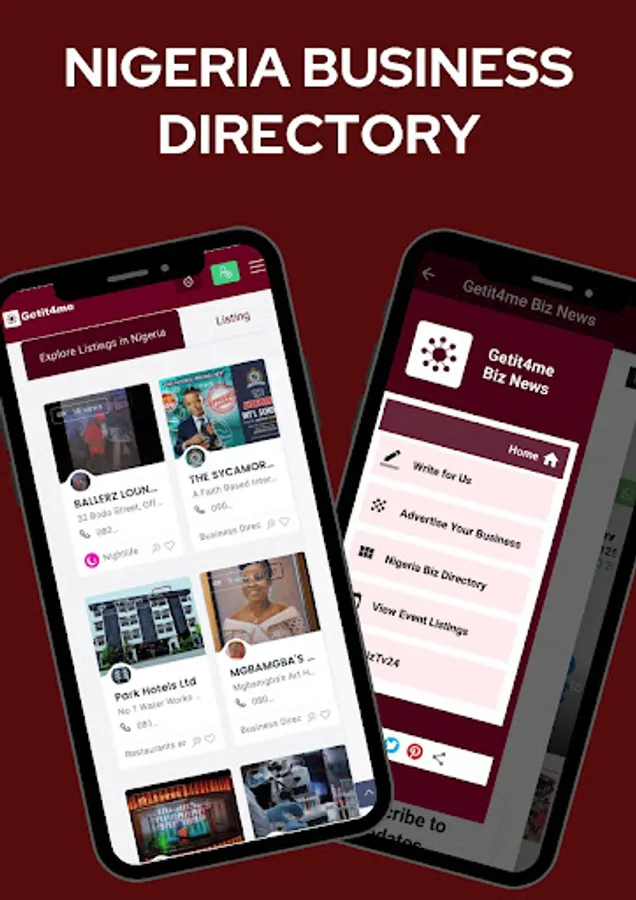 The app contains Business listings across Nigeria with exciting images, address and contact information.