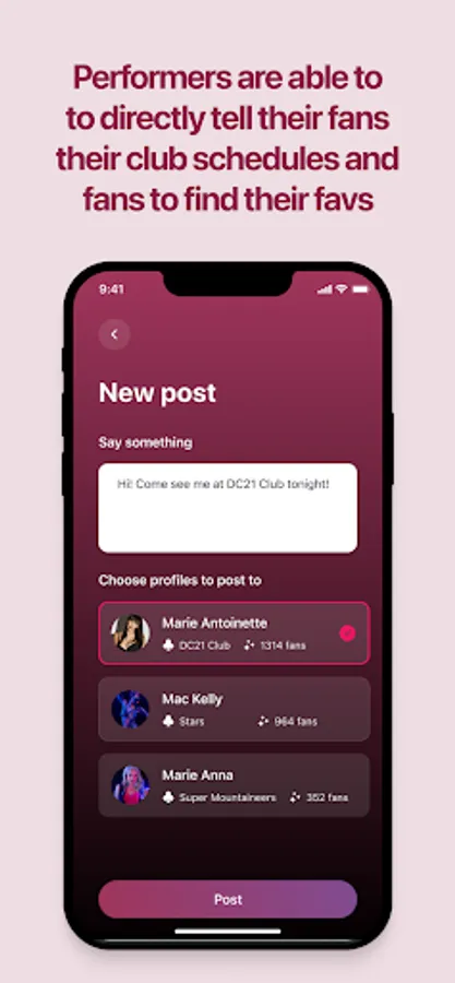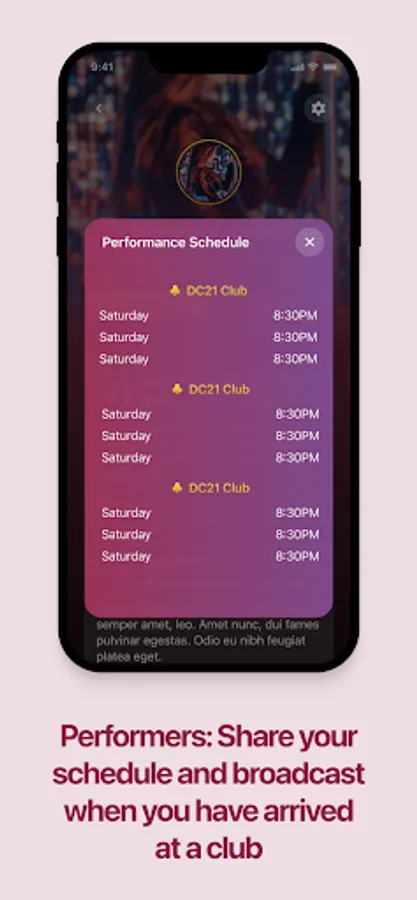 FANS: Follow your favorite performers and find where they are performing next. Be alerted when your favorite dancers check-in to various clubs and check out their profiles to learn more.