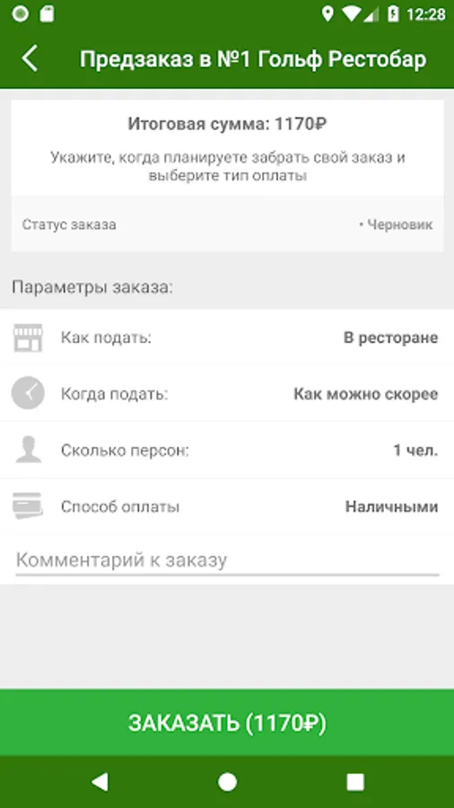 When you are hungry, the last thing you want to do - is to wait for your order. With an appendix №1 Golf Restobar do pre-order and pay the check at a restaurant a lot easier. All you need to do - is to select dishes from the photos, specify the time of submission of the application and send it to the restaurant. The waiter takes the order and at the touch of your arrival Buffet will be served. Push-notifications allow ensure that at some stage of your order. Bon Appetit! Without waiting!