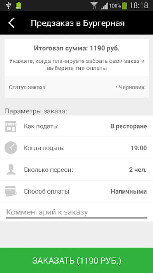 When you are hungry, the last thing you want to do - is to wait for your order. With the app Burgernaya do pre-order and pay the check at your favorite restaurant so much easier. All you need to do - is to select dishes from the photos, specify the time of submission of the application and send it to the restaurant. The waiter takes the order and at the touch of your arrival Buffet will be served. Also, using Burgernaya applications can be ordered takeaway - this will save a lot of time and do not leave your car for a long time. Push-notifications allow ensure that at some stage of your order. Bon Appetit! Without waiting!