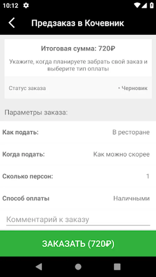 When you are hungry, the last thing you want to do is wait for your order. With the application Nomad Teahouse pre-order and pay a check at your favorite restaurant is much easier. All you need to do is select dishes from photographs, specify the time of serving and send a request to the restaurant. The waiter will take the order with one click and the table will be set for your arrival. Push notifications will allow you to keep track of what stage your order is at. Enjoy your meal! No waiting!