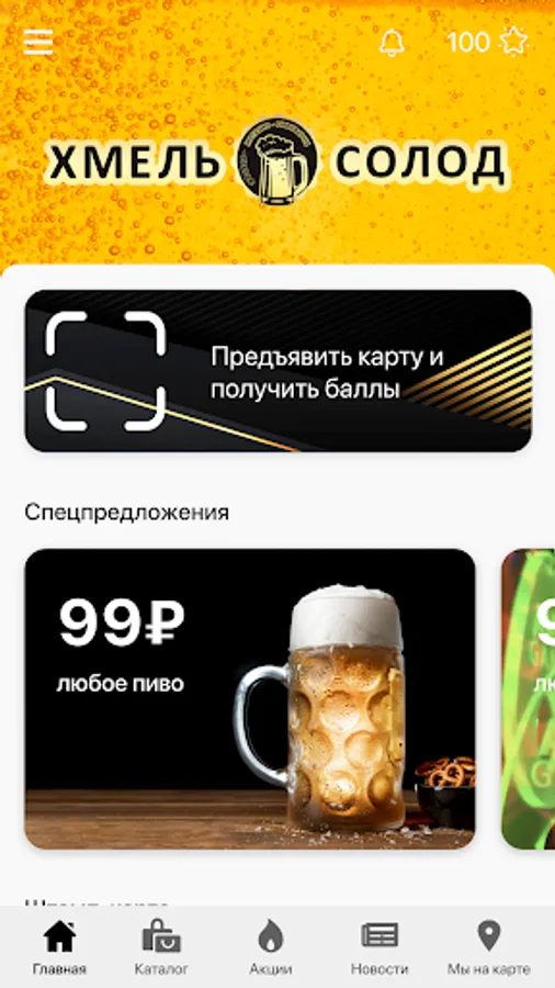 With the application "Khmel Malt" you can follow the latest news from the network, updates, and receive unique offers.