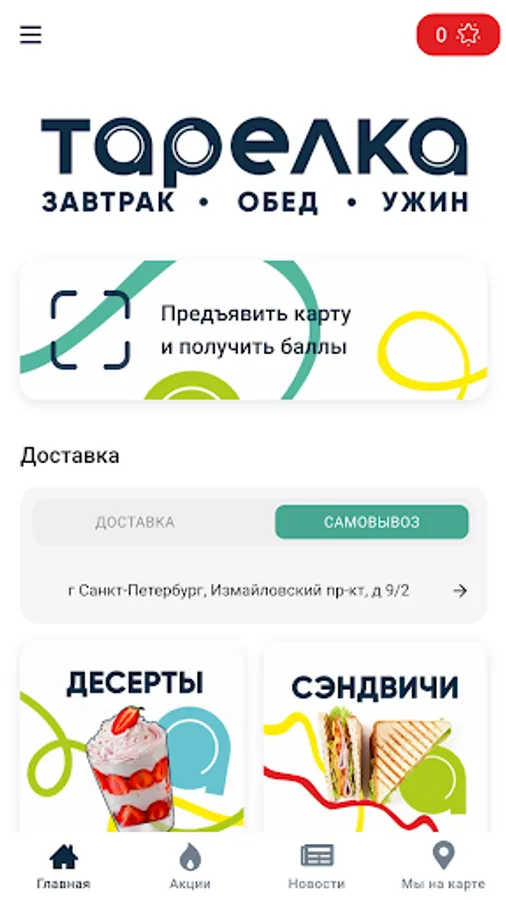 Here is a mobile application of the St. Petersburg network of canteens of a different format "Plate". The Tarelka chain was created for those who value their free time and love healthy and tasty dishes for breakfast, lunch and dinner!