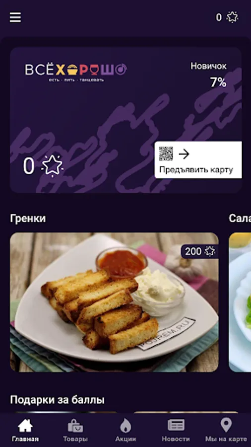 With the application "Vsё Horosho" you can follow the latest news of the restaurant chain, updates, receive unique offers.