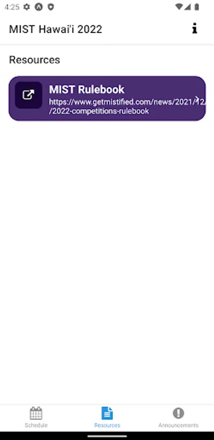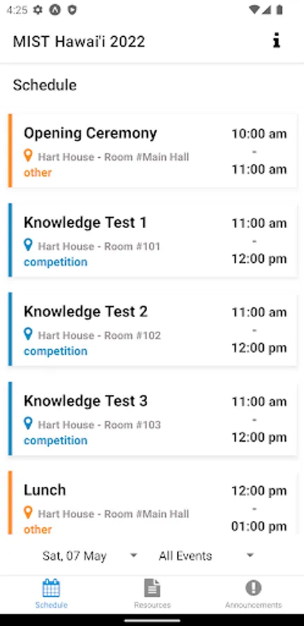 View your schedule, get directions to your competitions, view helpful resources for your tournament, and stay up to date with any announcements during the tournament.