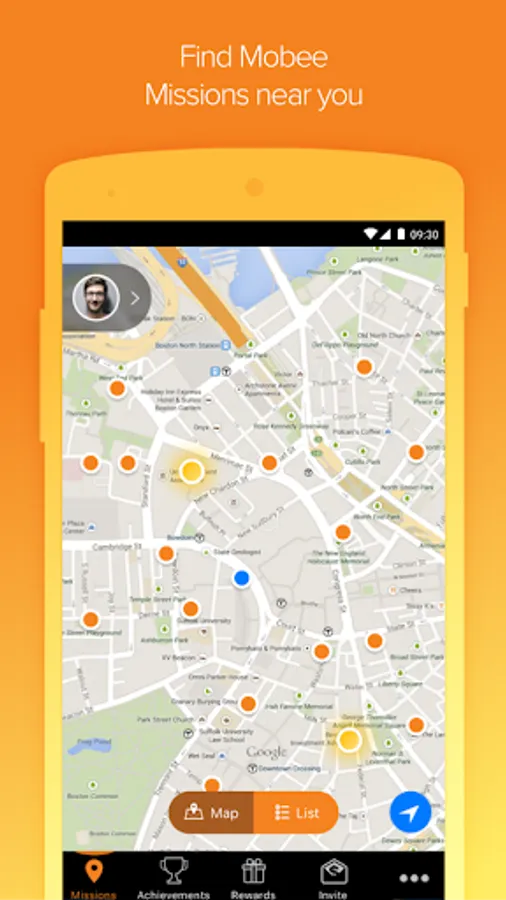 1. Open up Mobee and pick a business on the map - there are thousands of "Missions" across the US at a variety of retailers and restaurants.