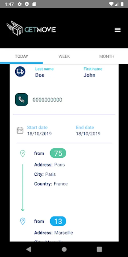 GetMove app allows the team leader to be able to view the tracking of his routes. The application is connected to your favorite navigation tools allowing the driver to follow the route best optimized for his vehicle.