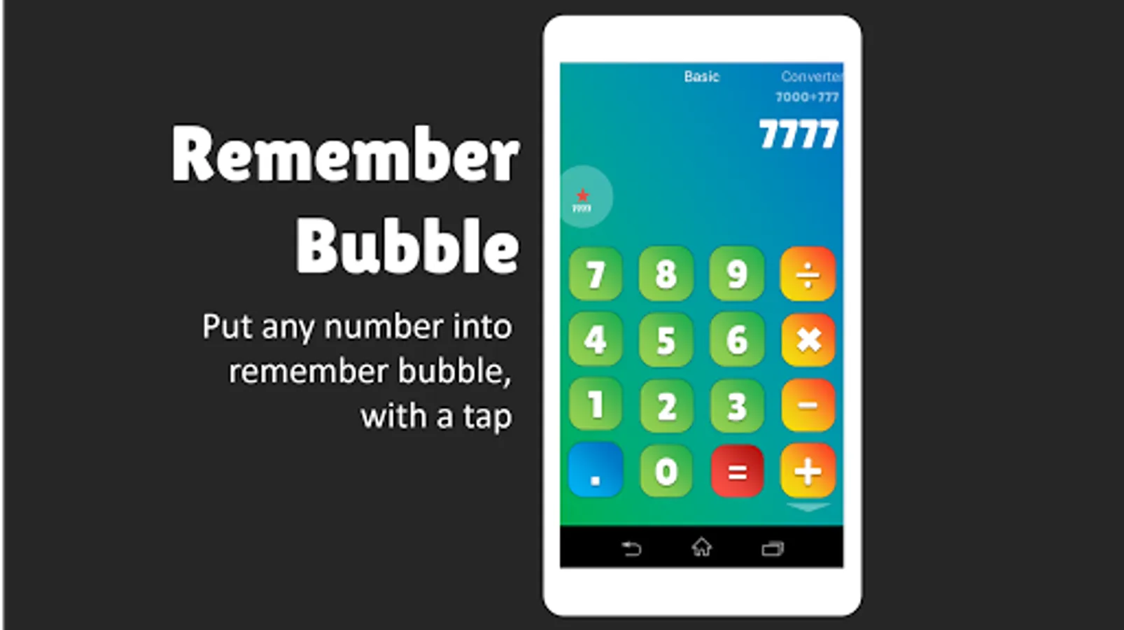 ★ Remember Bubble - Save any number into memory just by tapping remember bubble, tap again to retrieve it.